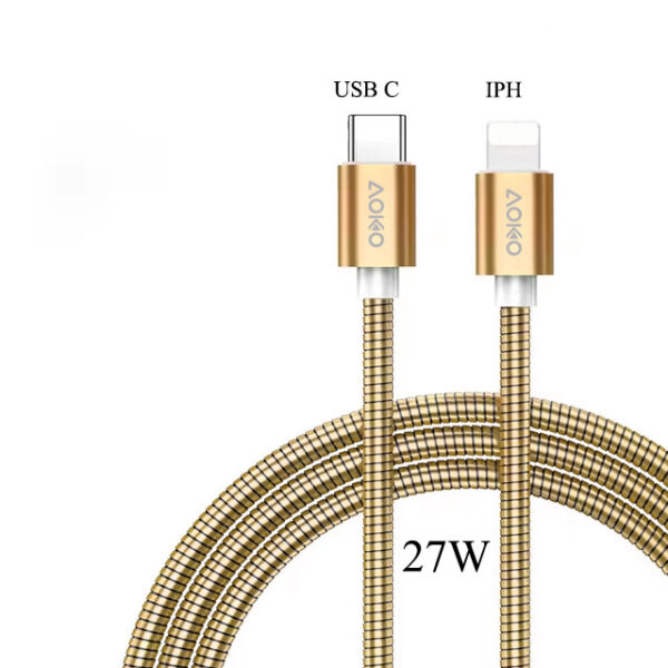 AW787-27W-3Feet Metal USB-C to iPhone Cable-Gold