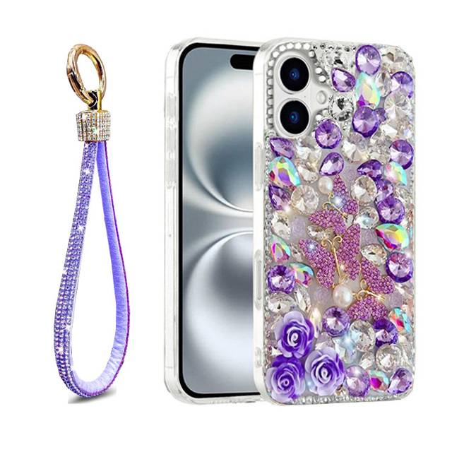 Butterfly Flower Rhinestone Case-iPhone 16-753654A