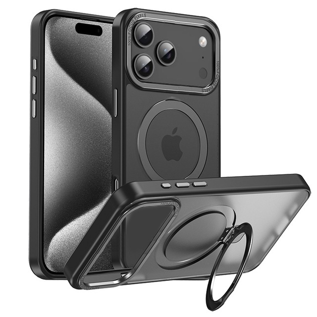 PC TPU Matte back case with Magsafe ring hook stand for iPhone 17 Pro Max