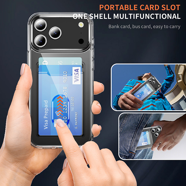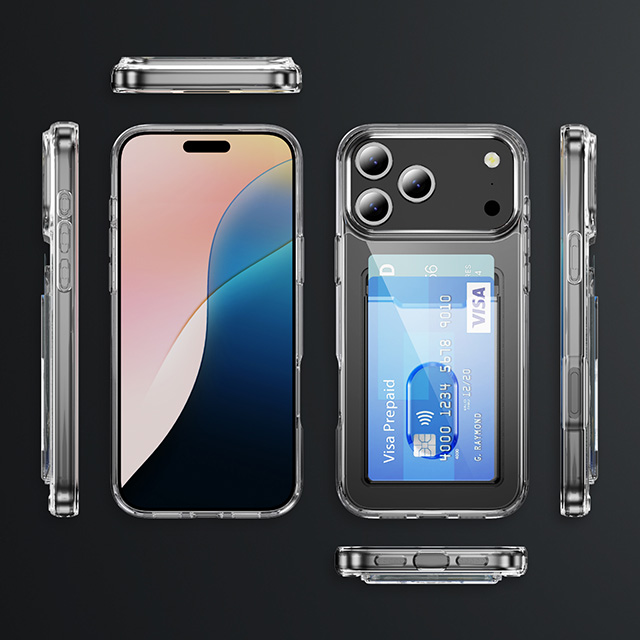 PC TPU Clear Card Holder Case for iPhone 17 Pro