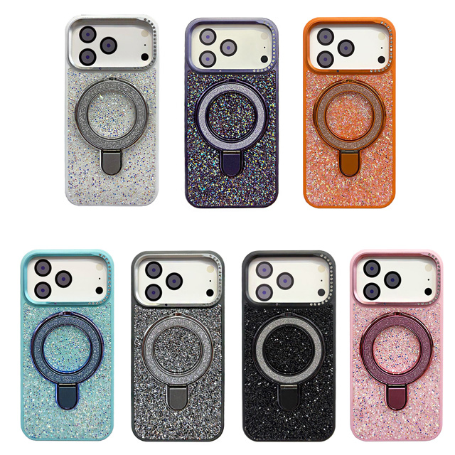 Small Stone Rhinestone Glitter Magnetic Stand Case